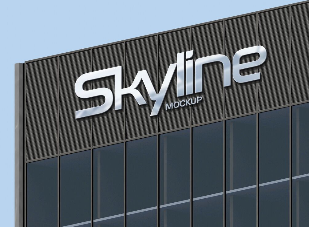 Showcase your logo with this bold and realistic building signage mockup bundle.