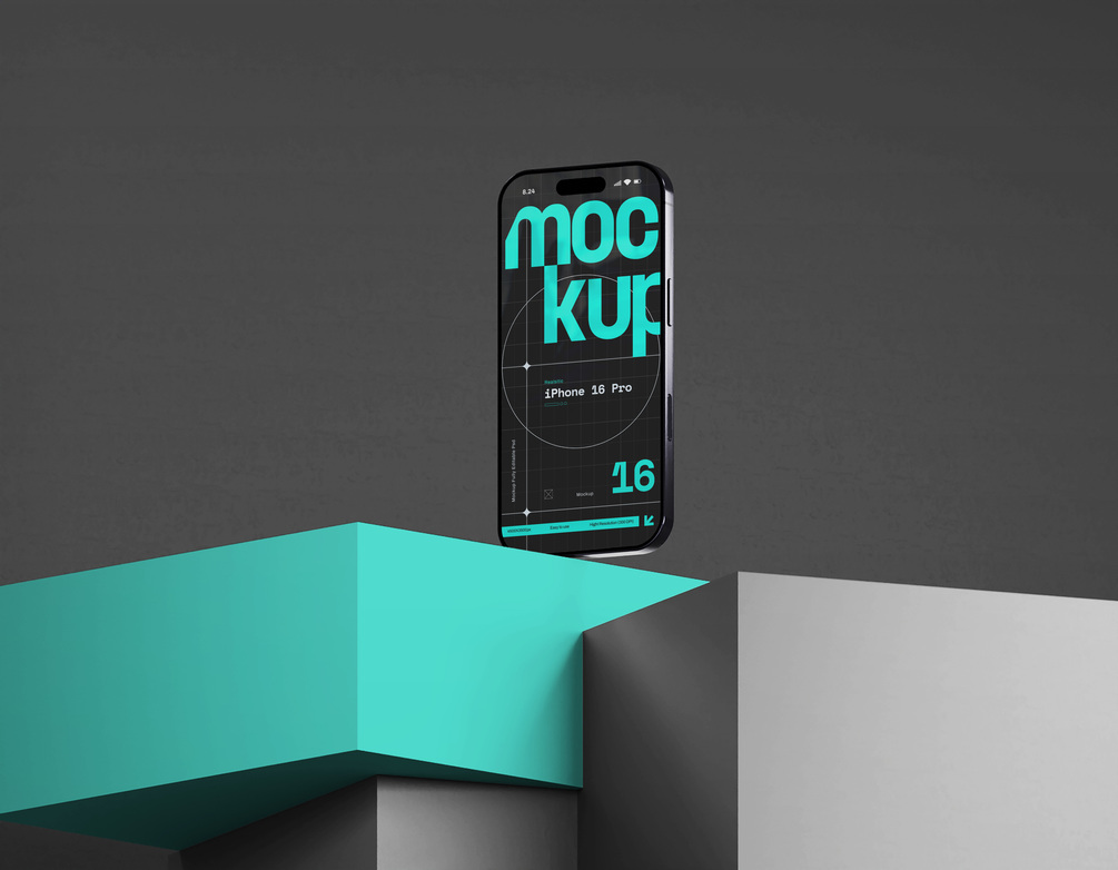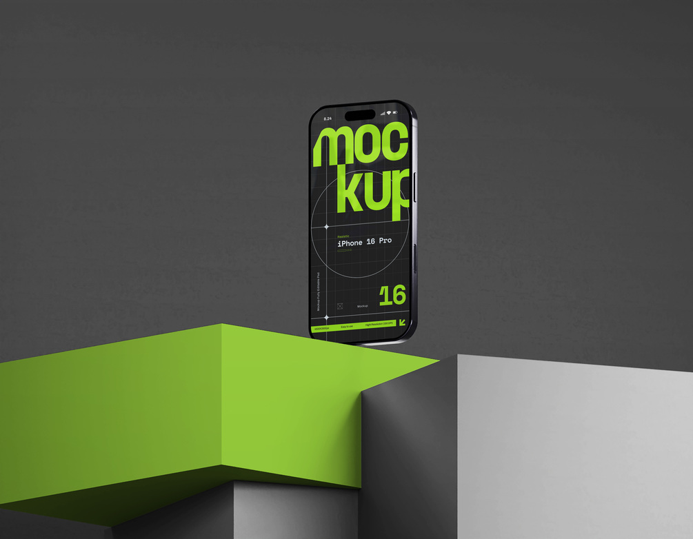 Showcase your design with this bold and futuristic iPhone 16 Pro mockup.