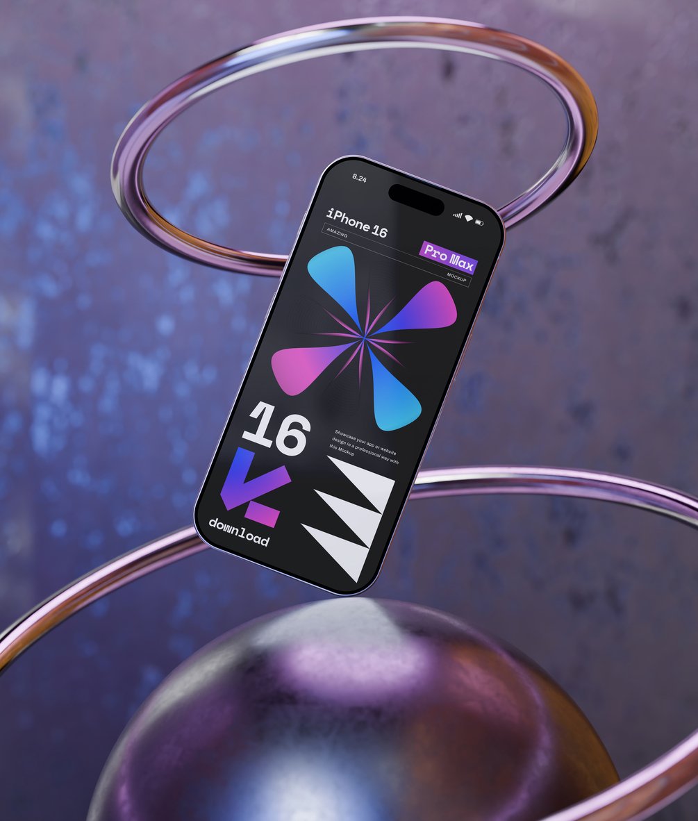 Showcase your design with this futuristic iPhone 16 Pro Max mockup.