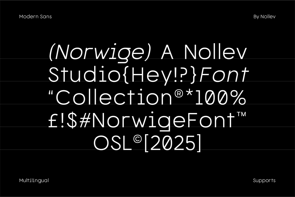 Norwige is a modern dynamic sans-serif family designed with clean geometry and lively energy. With 18 versatile styles — from Thin to Black, plus matching Italics — Norwige is perfect for bold branding, editorial layouts, and digital experiences.