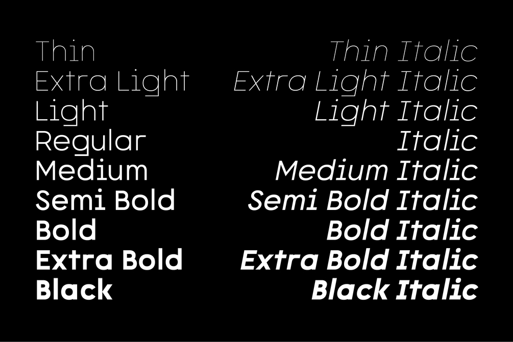 - ✨ 18 Font Styles – 9 weights from Thin to Black, plus 9 matching Italics.